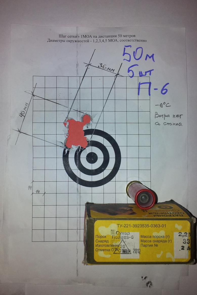 Странно что с чока и так кучно. У меня Полева с чока летит куда угодно, только не куда целюсь. На 50м разлёт около 40см.