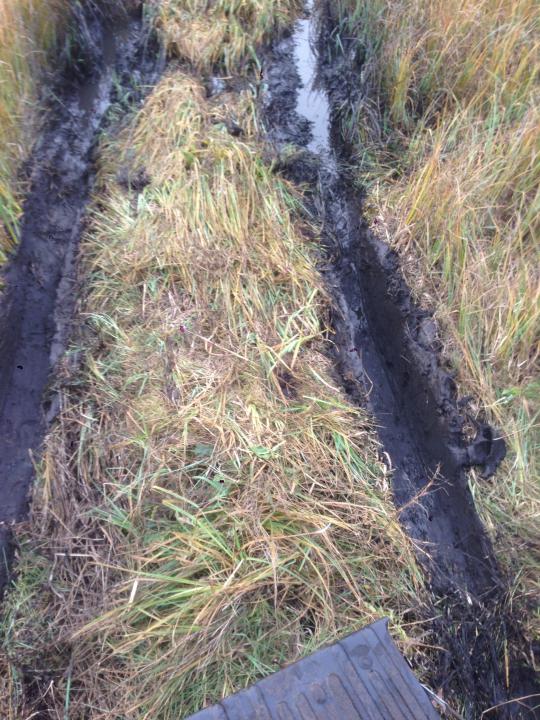 не обошлось без приключений, решил проехать по чужим следам и сел на брюхо в раскисшей низине) в очередной раз убедился что не зря поставил лебедку) вот только самодельный якорь плоховат(треугольная рама из уголка, в нее забивается 6 метровых прутьев), 4 раза вырывало его из земли, но все же выбрался) |