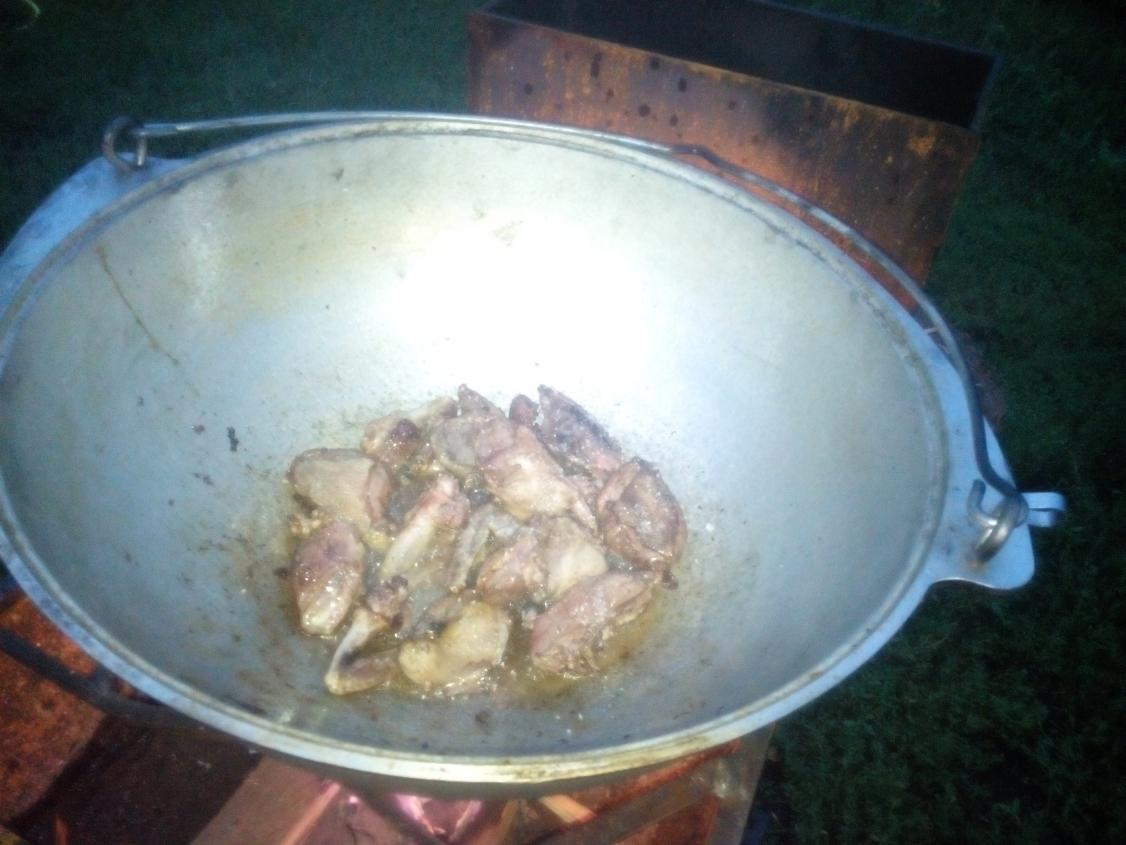 мулян готовим так - варим в большом котле выпотрошеных уток целиком, хороше если несколько из них будут не ободраные а опаленые, со шкурой.