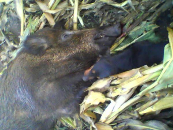 Славно поохотились на коллективной охоте в субботу! Добыт трофейный секач!