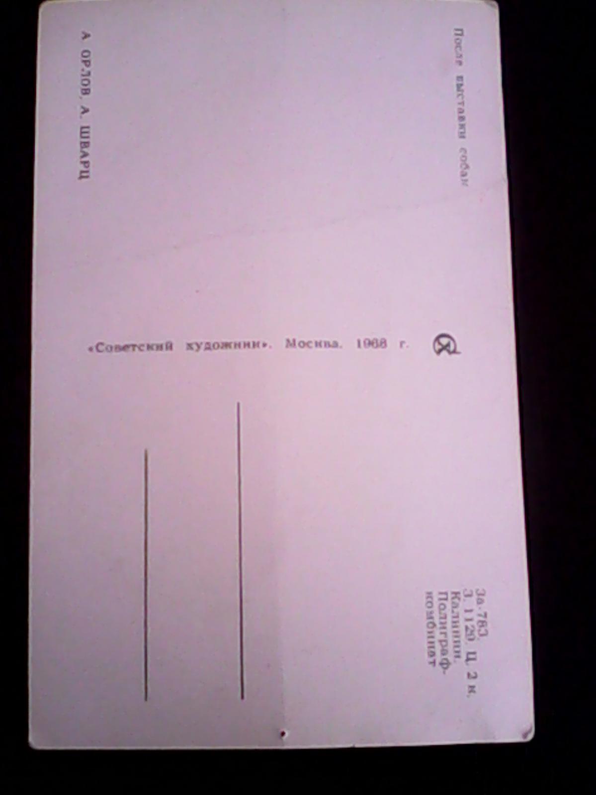 Старый охотник открытку подарил "После выставки" называется :) 1968 год цена 2 копейки