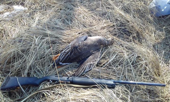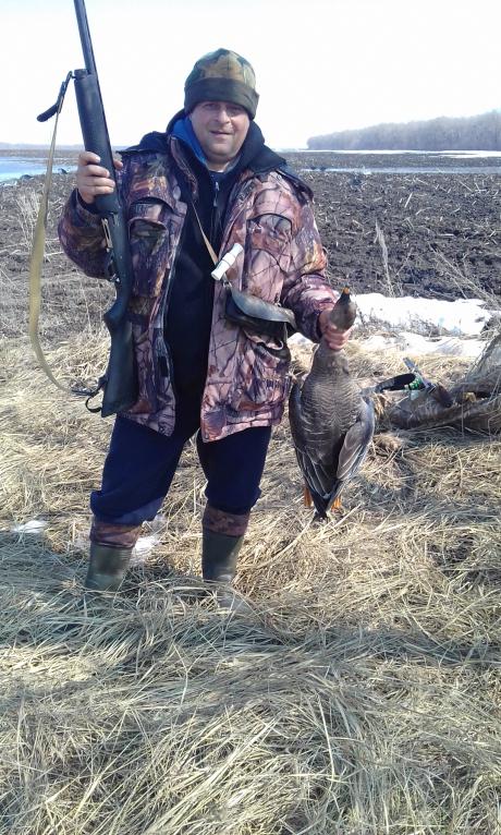 Чет в этом году как-то не складывается с гусем..."Первую волну" пришедшего к открытию разогнали, да и оттепель отпустила его дальше, а вторая, чет никак не накатит. Короче "высидели", по другом не скажешь...Сидит подлец на озимых пасется, перелетит метров 100 к воде на тех же озимых, "горло" прополощит и опять зелень щипать...ночует там же...БЕДА... Короче лета нет, если на него не наткнулся, складывается такое впечатление, что гуся нет совсем...Пару "дуделками надудели" прямо в профиля, три круга...снижение..шасси и мягкая посадка, с нами и остались...Одного позорно замазали...на этом все.