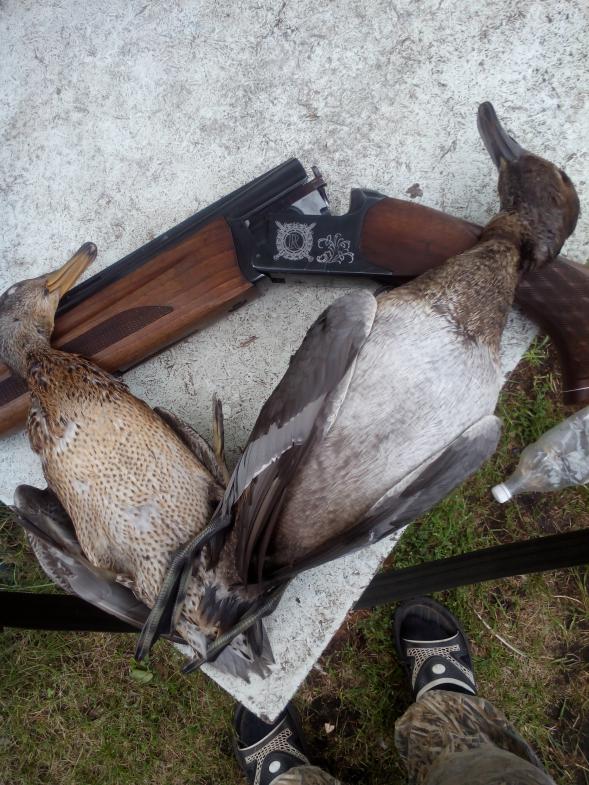 Был сегодня на новом месте. Спонтанно. На охоту не планировал. Зашел к тестю сосед (не охотник). Ездил за грибами и в поле увидел лужу с уткой, утка от машины вспугнулась, но через пару кругов села опять на лужу. Мы эту информацию приняли и поехали. Спугнули штук 15 когда подъехали, кинули 5 чучел, замаскировались сеткой и стали ждать. Минут через 30 прилетел селех и сел на лужу, был взят. Через полчаса аналогичным образом была взята серушка. Потом уже ближе к сумеркам видел высоко огромные стаи по несколько сотен голов утки, которые шли на кормовые поля. Небольшие стайки по 2-7 штук проносились над нашей лужей, 3 штуки были взяты. Уже по темному неоднократно садились к чучелам, но было много досадных промахов. Так что - утка есть, летает. Теперь необходимо освоить кормовое поле, понаблюдать, и нагрянуть с облавой.