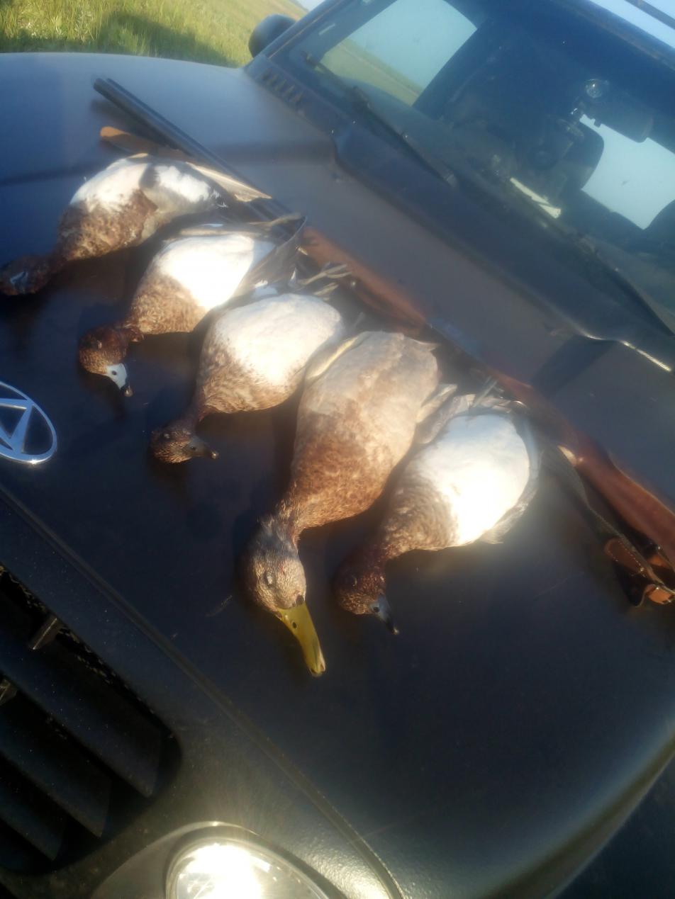 второго одного крякаша взял на вечерку, а третьего на утрянку двух крякашей. Следил куда утка летит, и на местах пролета вставал. Бил 25-30 метров в каждой тушке по 7-8 дробинок. Еще умудрился несколько раз сильно мазать и несколько раз просто не стрелял т.к. не с руки или утка могла упасть в камыш где не хотел искать. Теперь думаю брать с собой подсадных т.к. место определил и думаю утка пойдет на это место. Пока ждал уток еще пару щук поймал (карандашей) хорошо провел выходные, всем благ! |