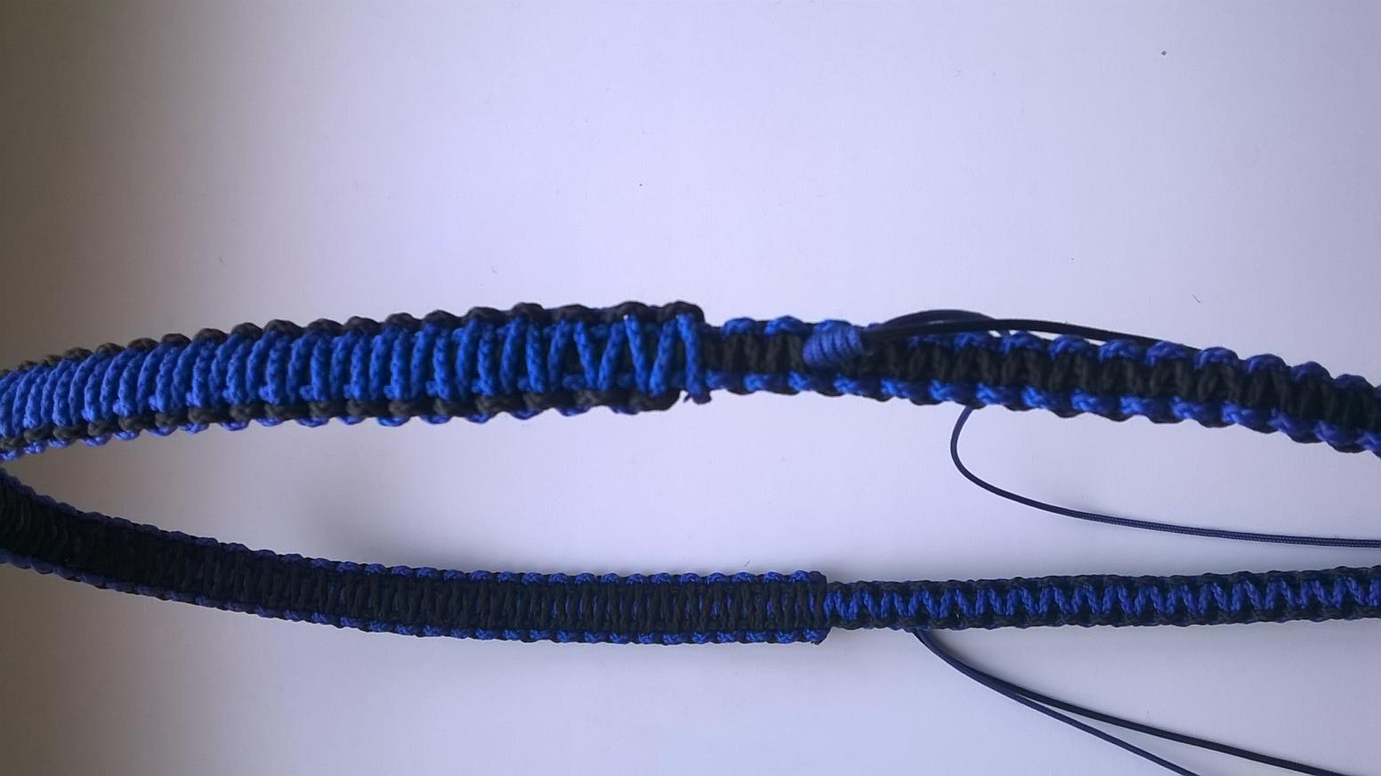 Вот фото плетения. Изделие с синей ниткой изготовлено и шнура 2мм, с зеленой - 3мм.