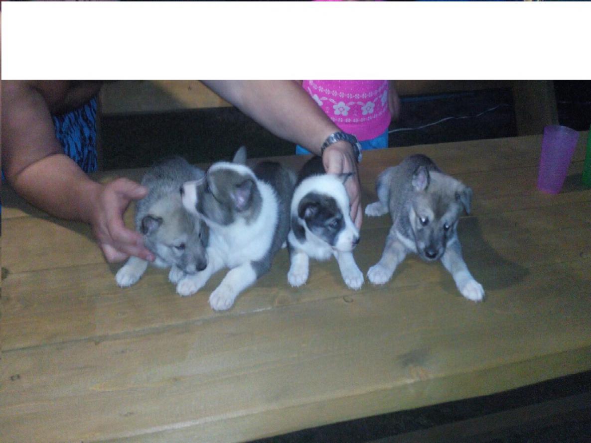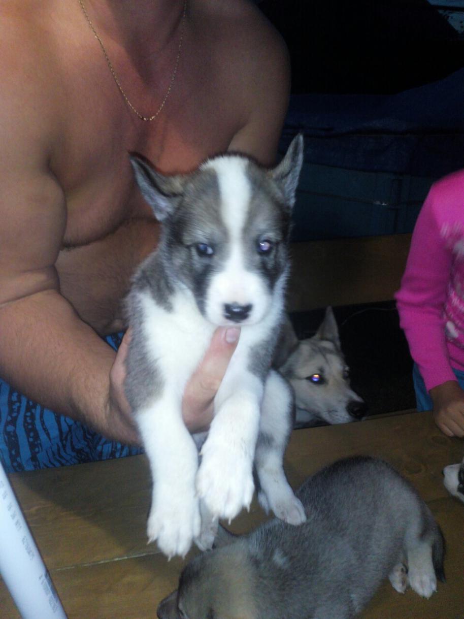 В связи с дефицитом времени фотать пришлось уже в темноте(извините уж как смогли). Серенькие кобельки 2шт., с белыми воротниками сучонки 2шт.. Хозяйка видит цену в 7 000 руб. Щенкам месяц.