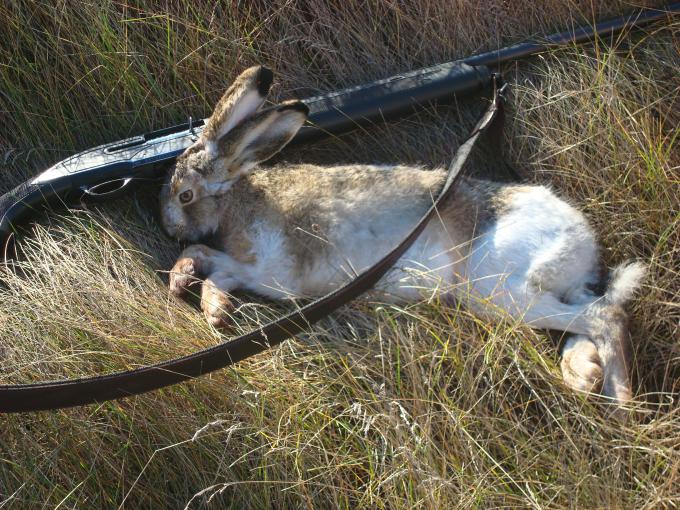 Сегодня с другом тоже хорошо побродили,видели достаточно много зверя,короче душа радовалась охоте. Что касаеться самого предмета охоты,в одном овражке талкнули лису,но оказалась умнее,перед номером ушла в поле,почуела что то.Потом поехали на полянку,где ростут реденько молоденькие сосенки,подняли там 4 косых,заяц лежит плотно вскакивает почти из под ног(молодняк потому что,не епотные,до последнего лежат),плюс к этому достаточно высокая трава,максимум видимости метров 30(это лучший вариант),после подъема очень сильно жмется к земле,порой можно просто не заметить подъема.Короче из 4 все таки одного свалил.День просто чудесно прошол,довольный как удав приехал домой