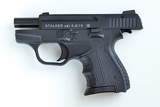 Сигнальный пистолет STALKER - первая самозарядная модель на российском рынке сигнального оружия с полным циклом работы автоматики! При выстреле за счет давления пороховых газов затвор пистолета откатывается назал, одновременно извлекая из патронника и выбрасывая далеко вправо стреляную гильзу. Одновременно, двигаясь назад, затвор взводит курок пистолета. Достигнув крайнего заднего положения, затвор под действием возвратной пружины начинает движение вперед, одновременно захватывая из магазина верхний патрон и досылая его в патронник. STALKER снова готов к выстрелу! Полного цикла работы автоматики с откатом затвора (так называемая функция BlowBack) может реализовать только достаточно мощный боеприпас. Как и в сигнальном револьвере LOM-S, в самозарядном пистолете STALKER используется тот же монтажный (строительный) патрон калибра .22NC (5,6*16 мм) с серой или коричневой головкой. Его мощности хватает как на более громкий (по сравнению с традиционным для России боеприпасом к сигнальному оружию - капсюлю 'Жевело') звук выстрела (сигнал), так и для надежного обеспечения полного цикла перезаряжания. Сигнальный пистолет Сталкер имеет небольшие габариты (длина 143 мм, высота 104 мм, толщина 24 мм) и массу 460 грамм. Его габариты находятся ближе к субкомпактным пистолетам, что позволяет STALKER быть необременительным при транспортировании, ношении и стрельбе. Емкость однорядного магазина - 9 патронов. Пистолет будет предлагаться в различных вариантах исполнения: матовый черный, никелированный (под хром), в различных камуфлированных окрасах, в том числе под карбон. Помимо функций сигнального оружия, самозарядный пистолет STALKER так же подойдет для обучения первичным навыкам обращения с оружием. В соответствии с Федеральным законом 'Об Оружии', сигнальное оружие калибра менее 6 мм продается без лицензии лицам, достигшим 18-ти летнего возраста.