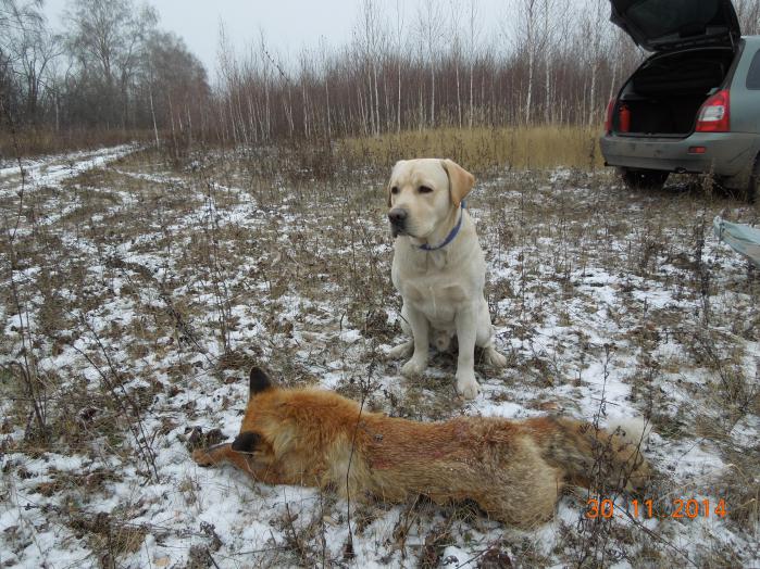 со вчерашнего дня фото. пока от безделья в ожидании маялся, решил лабра с лисой сфоткать. долго он упирался, не хотел не со своим трофеем фотографироваться, но кое как сфоткал.