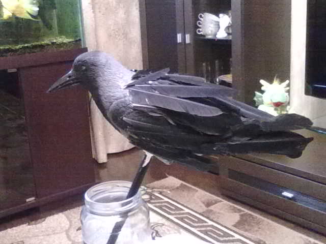 А я вот сегодня на пластиковую ворону перья клеил, такое страшилище получилось.,перьев мало,ещё нужно.