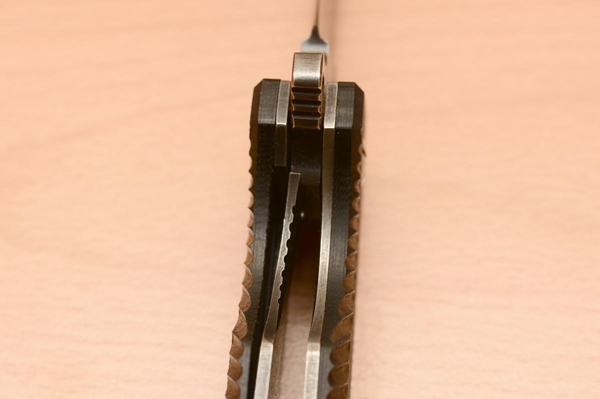Steel Claw Резус А. Дизайн Андрея Рогожкина, флиппер, сталь на клинке D2, накладки - черная текстурированная G10, роликовые подшипники. 2000р.