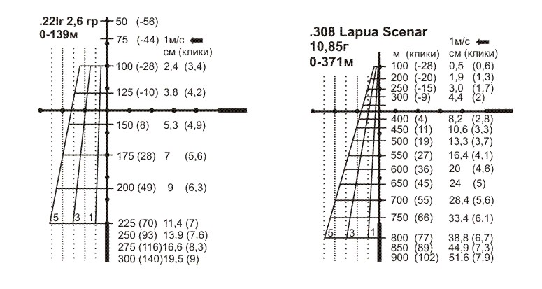 посмотри внимательно картинку. все рассчитано на б.к. и пристреливаются по подобным вариантам. на охоте главное не терять время,эту таблицу легче запомнить и не тратить время на расчет. в охоте +- пару см не сильно принципиально. (если не стрелять по мышам )