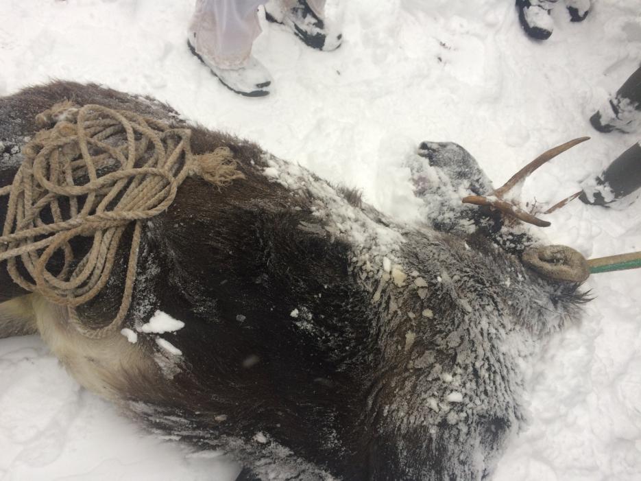Загонная охота в Челновершинском районе в прошлые выходные. Добыли три лося. Организация охоты на высоте, охота длилась 30 минут... Мой - сеголетка (первый раз стрелял по лосю). Рубейкина опять "рулит", две особи взяты именно ими, без шансов для зверя... Подвела дорога домой, снегопад и ветер...
