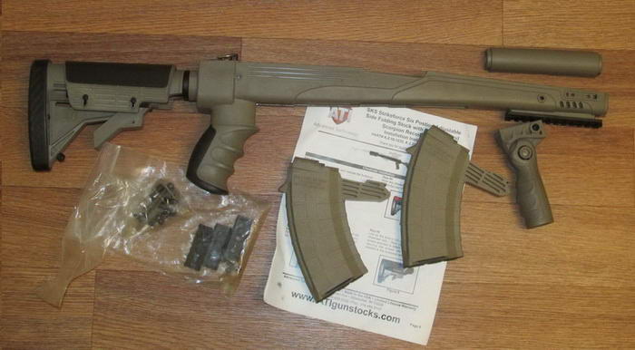 Выставляю на продажу ложе ATI, переднюю рукоятку и два магазина TAPCO на 20.