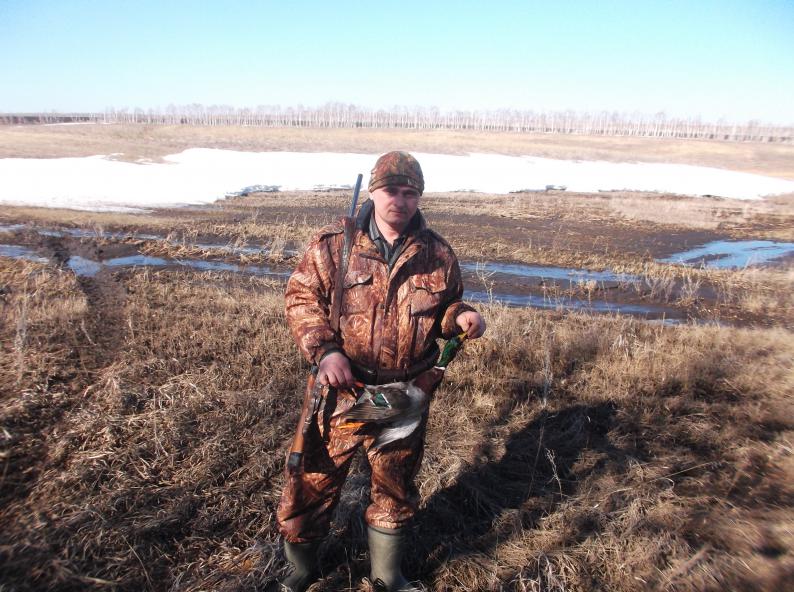 С 14 по 16 открывался в БГ районе. 13.04. гусь голов 500 сидел в кукурузе. Но так как конкуренция была большая ( погодка мать её) мы расставились в стерне в 1 км. от кукурузы. Стали ждать рассвета. Но в 4 часа у кого то душонка не вытерпела и эти тела стали подкрадываться к гусям . Естественно гуси не такие дебилы, что бы сидеть и ждать пока их за шею хватать начнут. Всё стадо поднялось и по тёмному свалило в неизвестном направлении. Всё что можно было выразить в тот момент у меня вырвалось одним словом- ПИД....Ы. В ночи слышно было долеко. А с рассветом и далее днём и на вечёрках гусь весь (редкими стайками) летел высоко и на призывы манков не реагировал. Лишь на второй день наманил пару гуменников. Но от большого желания добыть птицу промазал с30-40 метров сделав 3 выстрела. А брат вообще от волнения не снял с предохранителя, и отсалютовал уже в догонку. Больше по гусям стрелать не пришлось. По сравнению с прошлым годом гуся в разы меньше и летит в основном транзитом. Зато ути как грязи. Охотился на них два раза в обед между гусиными зорьками-вечёрками. Кидал в ручей шириной 2 метра резиновую утку привязанную на 10 метровую леску.Уточку течением мотало от берега к берегу- выглядело как будто она плавает. Ну и крякал в Настю2. В итоге в день по 2 селезня. Правда одного селешка у меня спёр какой то зверь. После добычи первого селезня была долгая пауза и мне стало скучновато и я решил прогуляться вниз по ручью в поиске нового места. Таскать в руках добычу было не охота, и я прикопал селесня в снег. Ходил я с полчаса,но за это время от ути остались на снегу лежать пёрышки и какашка походу от лисы. В итоге домой привёз только троих селезней. Постараюсь в пятницу ещё раз попытать гусика. А вдруг повезёт.