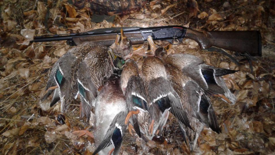 Сегодня отстояли очередную вечернюю зарю с напарником ФС63. Удалось, не много, добыть спелой утки.