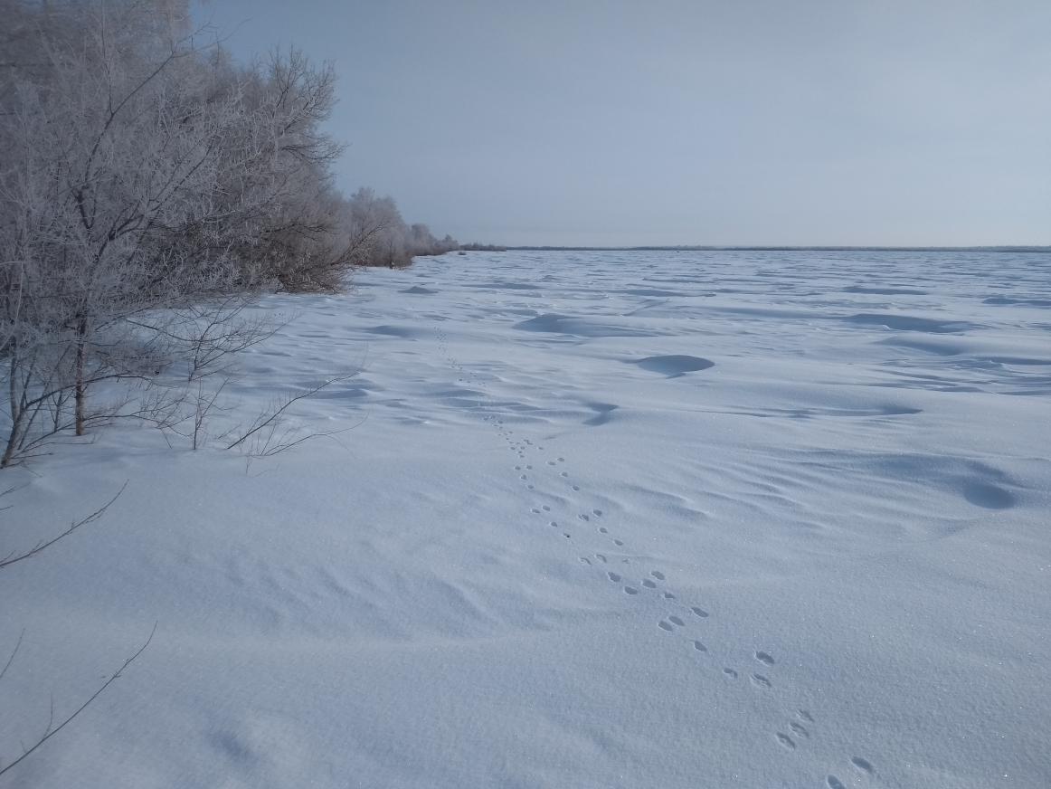 Отчитаюсь и я. В субботу в 8 утра машина показывала -37, вреале -32 точно было, но нас этим не испугаешь. Приехали в угодья, следов море, мороз ушастым не дает полежать. В первой же посадке поднимаем зайца, но он не доходя номера уходит через поле в низину заросшую кустарником. Обрезаю через поле, брат полез в самую чащу, вылетает на меня заяц, после второго выстрела кувыркнулся, закрутился и вдруг погнал на 3 ногах не теряя скорости в сторону посадки где его первый раз подняли, ну а дальше до темноты мы его гоняли, а он нас .... обманывал, попутно подняли ещё двух, одного смазали, другой в поле ушел. В воскресенье 8-30 уже на месте, решено добрать трехногого во чтобы то ни стало, решили делать короткие загоны метров по 300, через каждые 50 метров захожу в посадку смотрю след, и опять он сумел нас надурить пропустил загонщика в чащобе, поднялся за спиной и ушел опять в заросли. Встаю на след, отец с братом обрезают. Заяц дошел до кустов и на тропу, а там за две ночи натоптали! Ходил я там кругами, и вдруг вижу два прыжка 3-х лапых, под большой куст, обошел его раза 3 - выхода нет, тут он! Снимаю лыжи лезу туда, снега по пояс, ломаю ветки, кричу - не выходит. Минут 5 я там ползал, только когда наступил на него он вылез, стреляю через кусты, готов! Вот такая получилась охота!