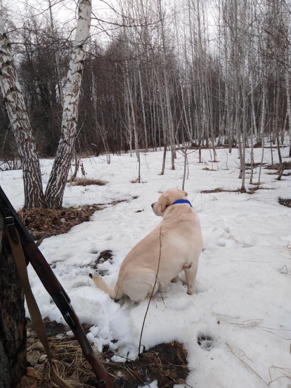 во время открыли. и погода под стать. вчера сил не хватило после работы ехать. а сегодня пораньше в деревню приехал. пока то, да сё, в пятом часу пошел не спеша к заветной полянке на краю леса. на зады только вышел, кобель по большой нужде сел, а я смотрю куропатки пара выбежали на дорогу и бегут)) одна вправо нырнула в траву, а вторая бежит дальше. кобель увидел, скулит)) вроде дернулся бежать, а дело то не доделал)) и так вот полусидя припустился, на ходу @овно теряя)) да с лаем)) иду и думаю- зимой заяц, если дорогу перебежит, пока едешь на охоту, то считай можно разворачиваться, а тут куры... дикие. а красота ж вокруг, снега мало уже, весна. в сосняк захожу и опа, сапог полон снега. ладно, пролез до полянки. в этом году деревья еще выше стали. а там зима. снег вокруг.. простоял я там до начала сумерек-тишина. а смотрю по кобелю-слышит ведь что то. решил вернуться на поляну перед сосняком, где снега нет. а там лёт уж вовсю. первого почти в ноги уронил. подранок. лабрик с живой птицей оторопел на полминуты, видимо соображал что с ней делать. аккуратно взять-она не дается, а ломать вроде как порода не позволяет)) но поймал в итоге. а второго уже в темноте взял. небо то еще более менее светлое было, увидел.
