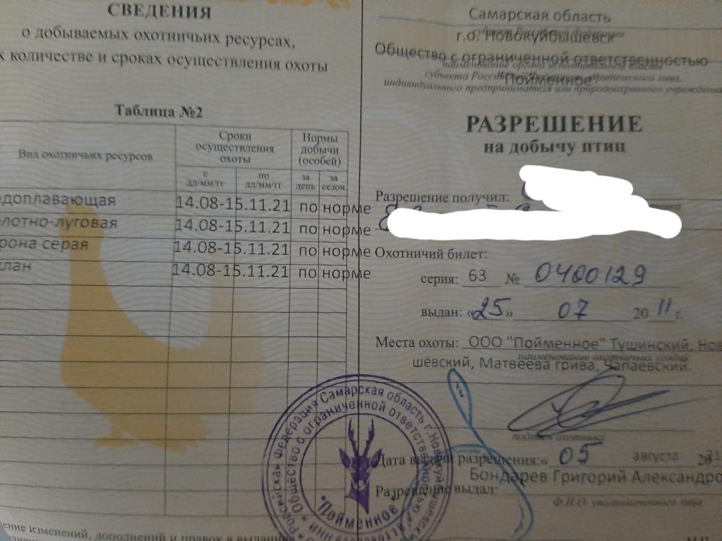 днями приобретал путевку на водоплавающую в Пойменном. При оформлении обнаружил, что срок действия оной — с 14.08.2021 по 15.11.2021, что в общем-то вызвало вопрос, поскольку указанный срок никак не коррелирует с 209-ФЗ, Приказом Минприроды от 24.07.2020 и утвержденными вышеуказанным приказом Правилами охоты. Напомню, что в Правилах охоты (п. 51.1) срок охоты на водоплавающую, болотно-луговую, степную и полевую дичь в период со второй субботы августа по 31 декабря, единый и непрерывный.