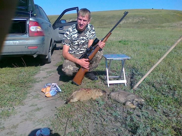 Сегодня съездили в Шигоны, 2 выстрела 2 сурка карабин CZ 550 243rem оптика Carl zeis 4-14*50. Первого стрелял Norma Oryx полуоболочка, лежал ко мне головой 87 метров попал за ухо вышло через брюхо кишки на соседнем кусте висели, сделали вывод, второго стреляли тем же патроном только оболочкой, сурок стоял боком 95 метров выходное отверстие с 5 руб. монету. Лицензия 600 руб. 1 сурок до 1,09,11.