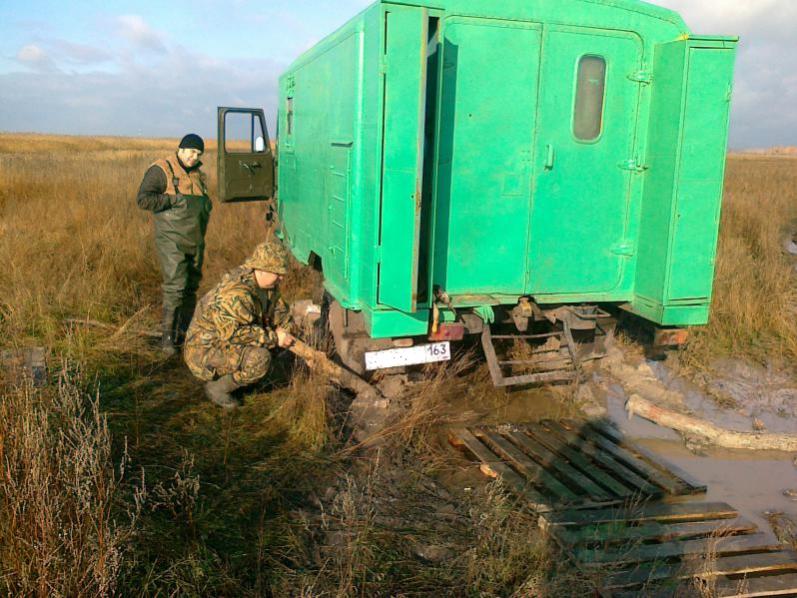 Мы тоже с пацанами рванули в субботу на заветное место на камышном выехали часа в три настроение супер доезжаем до конца третий посадки начинается распутица решаем штурмовать включаем передний мост Газ-66 уверенно рвет вперед доехали до лагеря решили развернуться наезжаем на жижу солончака и ВСЕ...чувствуем что все 4 колеса гребут а танк наш не едет, колеса забило глиной и ни туда и ни сюда начинаем извлечение машины из грязи часа полтора промудохались пошла машинка проехала метров 10 и опять встряла, бросаем это дело достаем боевые сто грамм, собираем ружья и в болото утка в принципе была стайки летели приличные голов по 50-60 но все стороной и высоковато взяли широконоску и чирка ну а на след. день опять часа 2 тягали нашу шишку приспустили колеса и понесла она нас домой...да к стати вечером слышали гусей а в воскресенье пока мы выталкивали машину на нас налетела стая гусей(штук 30)подтягивается пролетная по тихонечку..
