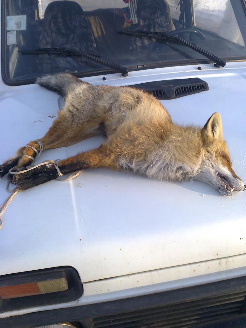 Разбавлю немного вашу беседу своим кратким отчетом. Сегодня наконец-то вырвался в поля. Получилось все довольно спонтанно, короче часиков в 11 встал на лыжи. Минут через 30 проходя по оставленной комбайном полосе (что посажено было так и не понял, вроде на просо похоже) собачка в 10 метрах от меня выковыряла все-таки косого прямо из-под снега. Лежал он прямо посередине своей жировки (это к слову о том, что зай не ложиться на жировке, очень даже ложиться и достаточно часто) в выкопанной в снегу норке, на фотках это видно. Стрелять возможности не было, очень уж близко от собаки шел. Гоняли мы его часа два, но так и не взяли, поднялся сильный ветер и началась поземка, на поле след быстро замело. Вобщем решили сделать небольшой загон в направлении машины. Загон не особо получился, товарищ сплоховал, подошел к лесополосе не с торца, а метров на 100 срезав угол, что косому оказалось достаточно чтобы уйти в противоположную от номера сторону. Делать нечего, прос...ли так прос...ли. Ветер сильно усилился, загонщики мои еще не подошли ко мне, стою мерзну прижавшись к толстой березе. Сколько я стоял не знаю, но повернув голову налево я замер. Слева от меня из-за спины в сторону загонщиков метрах в восьми шел молодой лисовин. Я присел, стрелять возможности нет слишком густые заросли. Чтобы прицельно выстрелить мне надо было выйти из лесополосы на край, а это метров пять, думаю может заметить мое движение. Отойдя метров 10 лисовин остановился обернулся и посмотрел в мою сторону, кажется я даже дышать перестал чтобы пар изо рта не шел, хотя и ветер был очень сильный. Не разглядев меня он продолжил свой ход вдоль лесополосы повернувшись ко мне хвостом. Ну думаю - пора, выбегаю на край полосы, целюсь, стреляю в угон. Лисовин закрутился на месте оседая на задние лапы. Стреляю второй раз, все лег, четвертый в этом сезоне. Посчитал, до него было 58 шагов. Стрелял феттер-полумагнум №1 в контейнере с насадком 0,75. Скоро и загонщики мои подтянулись. Поздравили. Идем к машине, руки и лицо онемели от ветра, хватит на сегодня. У машины горячий чай и до дому. В гараже растопил буржуйку, обработал тушку, теперь вот довольный сижу пивасик потягиваю.