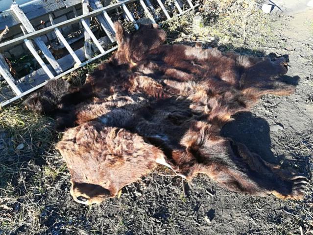 Медвежью шкуру с сибирского медведя средних размеров, неотделанную, ~7 лет, небольшие потёртости, на 1 лапе нет когтей, за 30 тыс. руб. продаю.