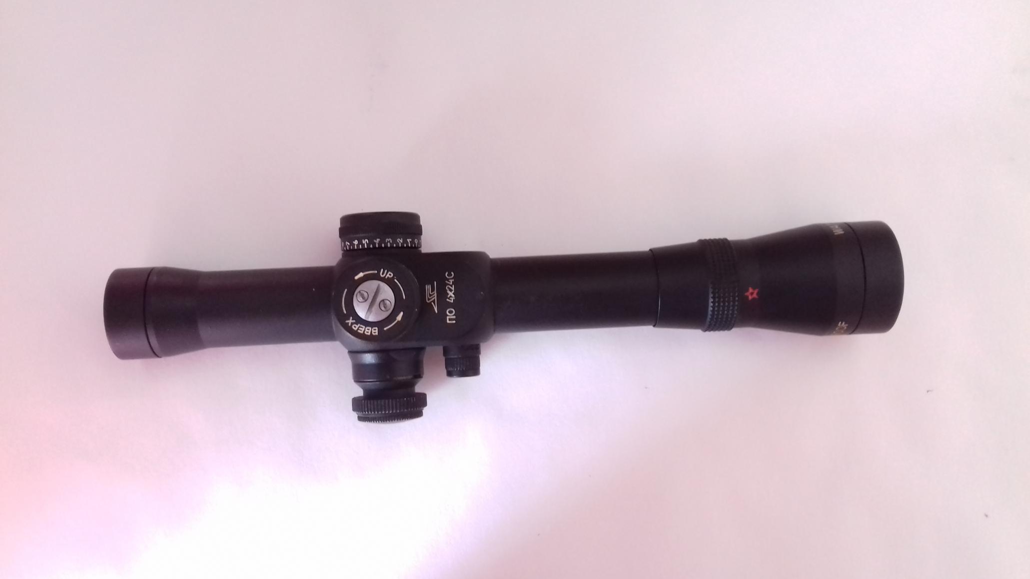 Прицел ПО 4Х24С, подсветка прицельной сетки, устойчивость к перегрузкам 700г.