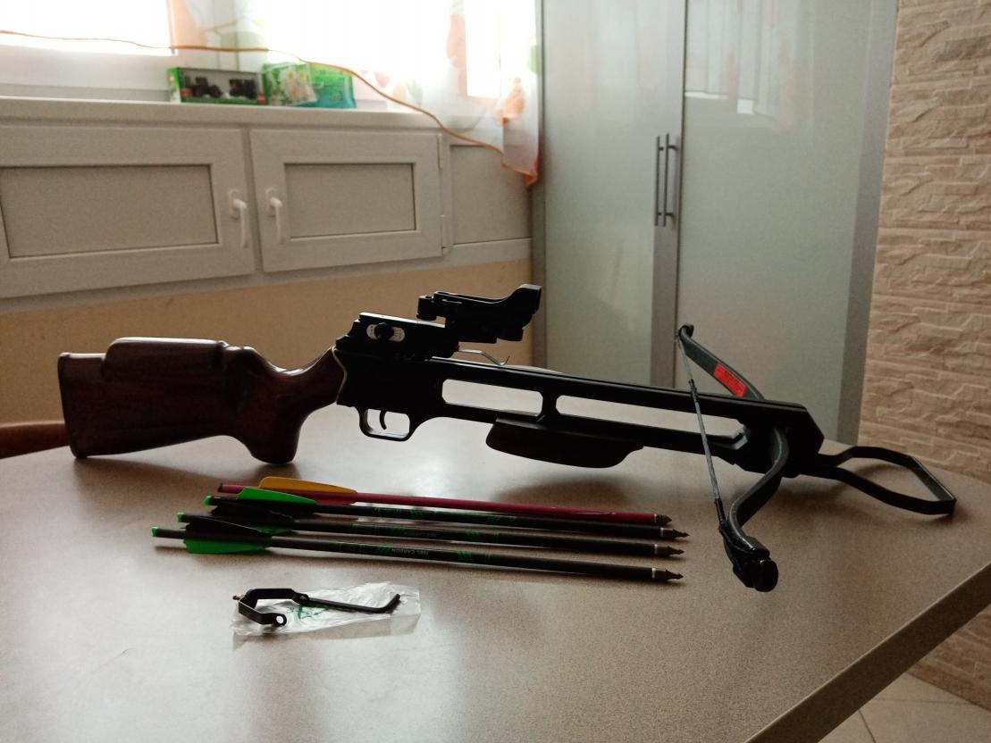 Арбалет спортивный Yarrou, рекурсивный, винтовочного типа. Идеально для начинающего стрелка. Ничего лишнего, минимум пластика, только хардкор - металл и дерево. В руках ощущается весомо, а не как игрушка. В комплекте простенький коллиматорный прицел-китаец (красная точка). Также есть штатный прицел с мушкой. Аппарат абсолютно законный, натяжение плеч до 43 кг, но достаточно убойный. Также отдам 3 карбоновые и 1 алюминиевую спортивные стрелы со съёмными наконечниками. Отлично помогает снять стресс. Цена 7500