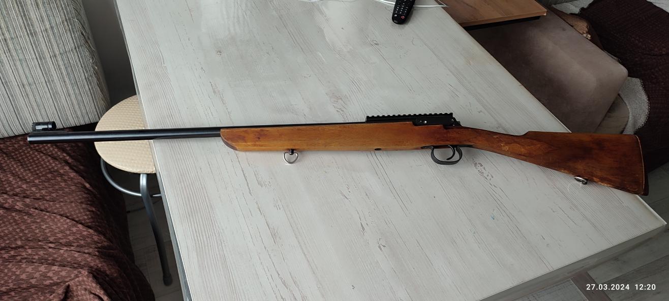 Винтовка ТОЗ 12 калибра 22lr: простая, надежная, точная в отличном состоянии. Толстый матчевый ствол большого сечения в сочетании с великолепным спуском залог точного выстрела.Установлена стальная планка вивера.