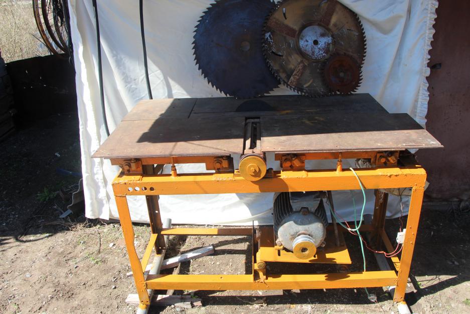 9. Станок универсальный (по дереву, металлу) на 380/220В (сейчас подключен на 220В, через конденсаторы). Мощность двигателя примерно 5 кВт. Регулируется по высоте, разборный. За время эксплуатации показал себя практичным и удобным в использовании. Ширина лезвия для строгания дерева около 30 см., имеется уголок для регулировки ширины распила дерева. 11,5 т.р. Находится в г, Кинель.
