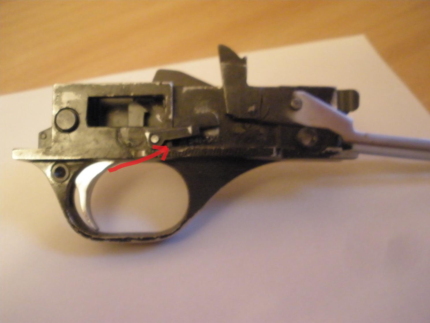 Вот потерял пружину при разборке поставил самодельную все равно не перезарежает кому не сложно можете замерить какая пружинка длина и толщина и вообще она тугая или нет? На фото самодельная.