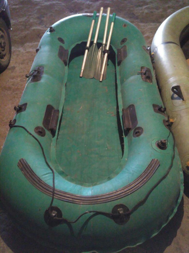 В комплекте весла. Насос один.