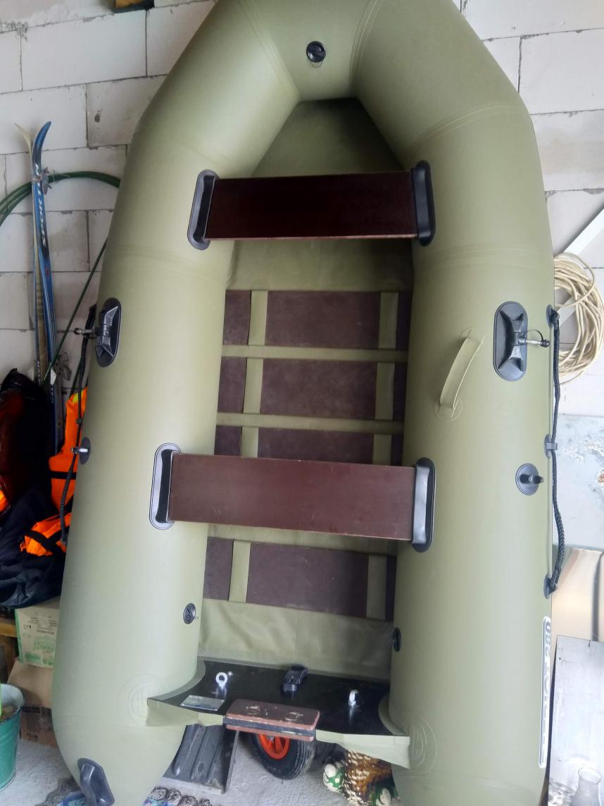 Состояние идеальное, есть маленькая царапина от крючка, залитая клеем. Год выпуска лодки 2014. На водоеме была несколько раз, хранилась накачанная, подвешенная в гараже.