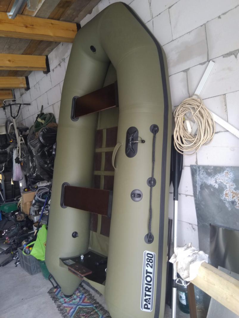 Продам лодку Патриот 280 с транцем под мотор до 4 л. с. Реечный пол. Сворачивается вместе с полом. Вес лодки 21 кг.