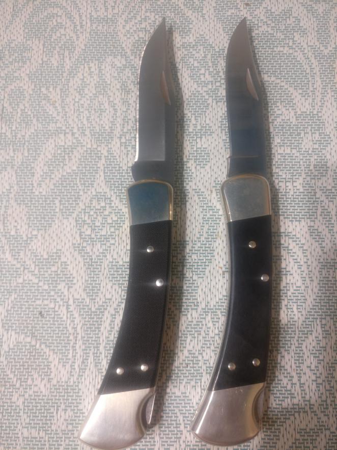 Два ножа, какая нах самоделка? Первый новый, и ценник у него конский, второй б.у. с нормальным ценником, не нравится, купите реплику на алиэкспресс, или с 420 сталью за эти деньги.