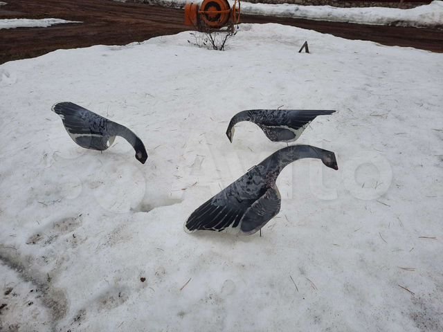 Самодельные чучела гусей. Пластик. Быстро устанавливаются, легко и компактно собираются. Возможность регулировки наклона от "кормящегося" до " сторожевого". Цена одного 350р. Всего 14шт. Продаю комплектом. Здесь бываю редко. Звонтте пишите в927205 26 тридцать.