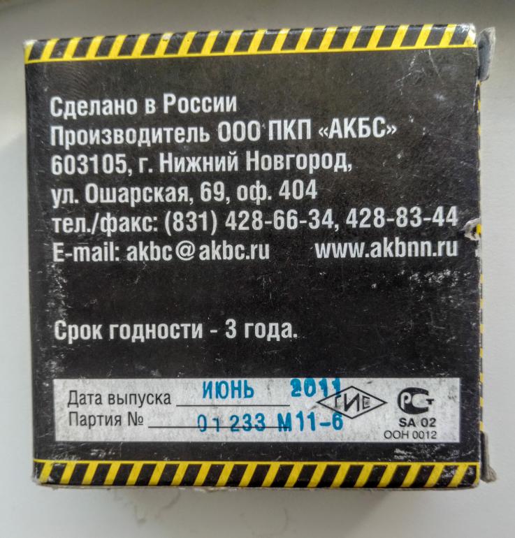 АКБС для INNA Tanfoglio, июнь 2011, партия 01223 М11-6