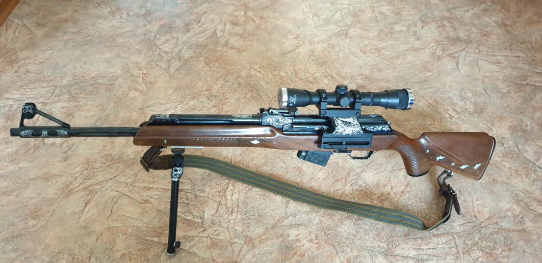 65000₽ Сувенирное исполнение, резьба по дереву, гравировка по металлу. Ствол 550 мм.Настрел до 100 выстрелов. В комплекте прицел ВОМЗ 4*32, чехол. Торг не воспрещен. |