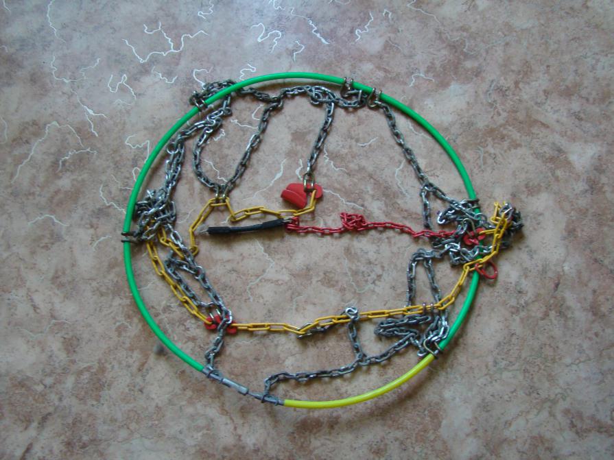 вещь отличная тоже апу!!! Несколько часов на тренировку и цепи вкидываются на колесо минут за десять. Только резиновый натяжитель надо поменять на пружину лопнет на морозе при пробуксовке в натяг. Вообщем с подобными цепями зимой бороздили леса луки на заметеных тропах двоем без лопаты из авто выходили только по нужде))) да! Автомобиль ваз 14модели (утюг вобщем)...