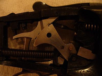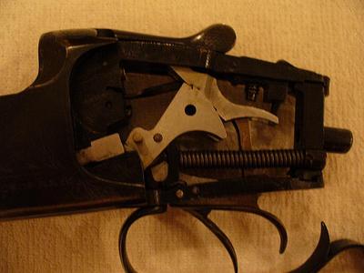 Вчера выезжал в поля еще раз убедился, что ружбайку необходимо показать мастеру. Теперь ситуация такова: нажимаешь на дальний курок (нижний ствол) - есть выстрел. Затем нажимаешь на ближний курок (верхний ствол) - ноль! Курок даже не нажимается. Пробовал сначала с верхнего стрелять - тоже клинит и выстрела нету! Короче говоря стреляет только нижний ствол. Сегодня и в домашних условиях испытал-подкладывал бумажку между бойком и стреляным патроном