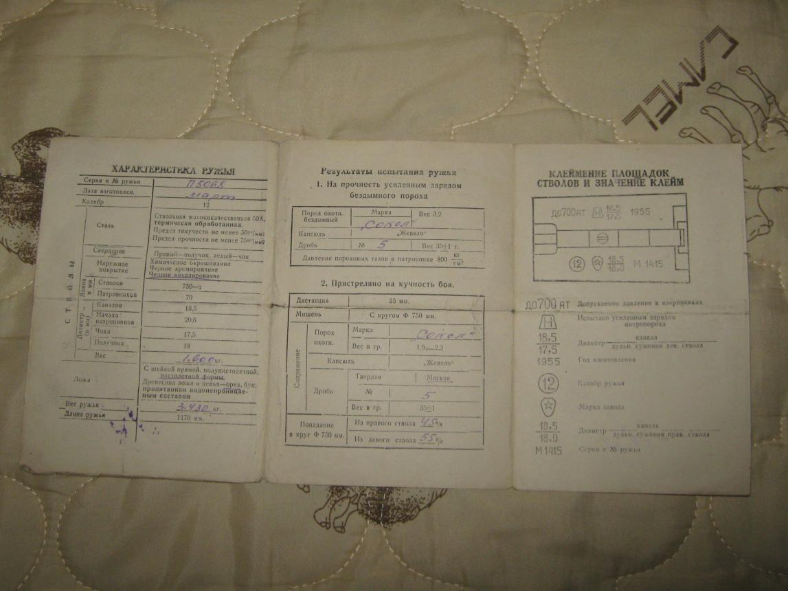 Иж-54. Изготовлено спустя ТРИ года после смерти СТАЛИНА .12/70, стволы около 750 , сужения стандартные, сохранился паспорт. Калка сохранилась на 3+,стволы внутри имеют сыпь (не критично и хватит еще внукам)снаружи в месте удержания рукой имеет потертости, дерево рабочее, кромка затыльника отколота на функциональные качества не влияет, других дефектов явных/скрытых не обнаружено.Общее состояние ружья на 4 балла, учитывая что ружью 7 марта будет 59 лет.