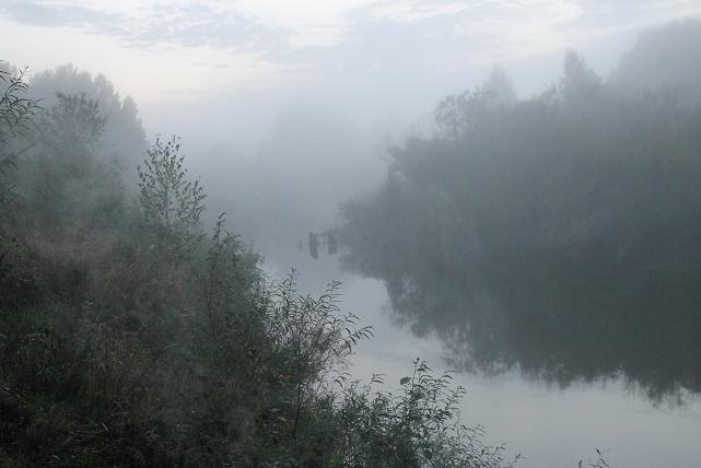 Утром Митяя разбудил будильник телефона, в палатке вещи стали воглыми, а вылизать из теплого ватного спальника не хотелось. Он отметил, что дождя нет и, кряхтя, стал шарить в полутьме, щупая одежду, выбирая, по его мнению, самую сухую. Его собака курц, зевая, смотрела на хозяина с отрешенным взглядом, всем своим видом показывая – ну куда ты, бедолага. Туманом заволокло всё – полькО, речку и даже верхушки большого леса просматривались с трудом. Мельчайшие капельки воды в беспорядочном движении пронизывали все вокруг. Утка не летала вообще, Митяй за зорьку не услышал ни единого свиста сильных крыльев, разрезающих воздух, лишь где-то неподалёку без устали молотил дятел. Туман постепенно поднимался, и Димка решил прошерстить с собачкой ближайшие старицы и мелиоративные канавы.