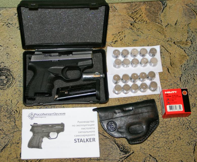 Лот#1- сигнальный Stalker с мортиркой, кабурой, ракетами и начатой пачкой Hilti- 7000 руб.