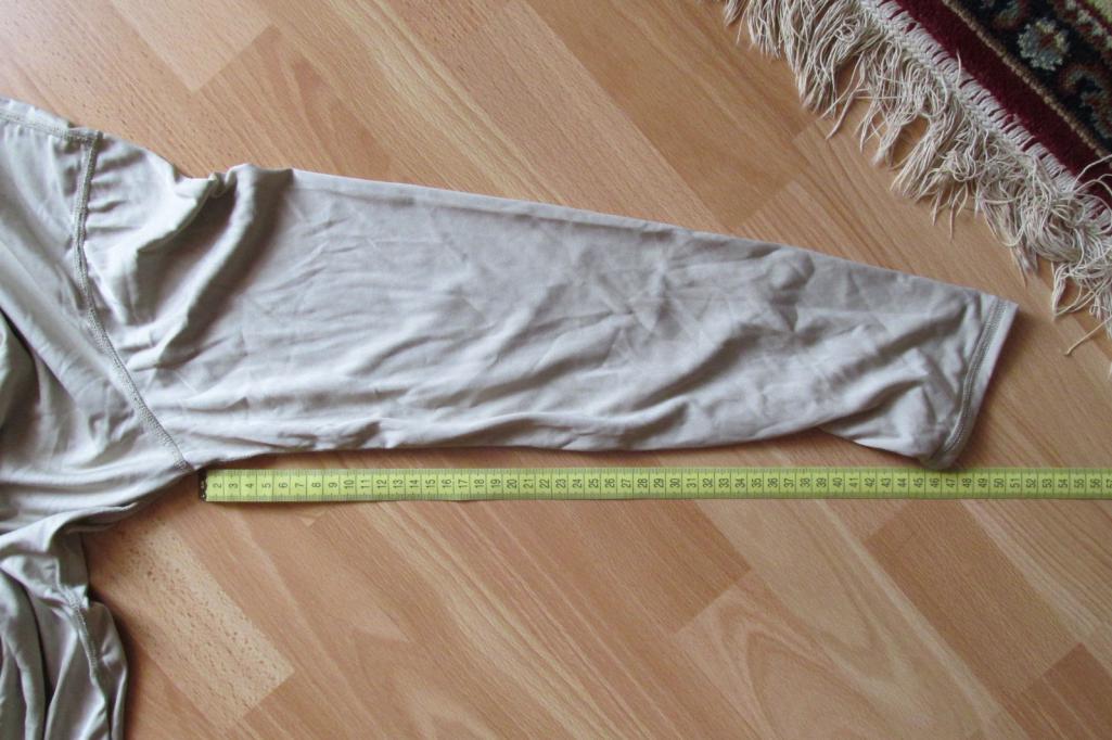 - Первый слой комплекта - кальсоны и рубашка с длинным рукавом - по сути это нательный слой белья , является термобельем , этот слой отводит лишнюю влагу(пот) от тела . Цвет бежево-песочный. Слой 1. Представляет из себя комплект футболки с длинным рукавом и кальсон, цвет десерт санд. Задача этого слоя состоит только в отведении пота на следующие слои, таким образом этот слой не согревающий а только потоотводящий. Комплект выполнен из PolartecR Power DryR. Размер комплекта таким образом подбирается так чтобы был максимально обтягивающим. Вырез на футболке О образный, на рукавах имеются отверстия для больших пальцев рук. По тактильным ощущения материал очень приятный к телу, напоминает шелк. При примерки и фотографировании при температуре окружающего воздуха в 25 градусов по ощущениям в 1ом слое прохладнее чем без него. Вес 320 грамм Цена за верх : 1300 р. |