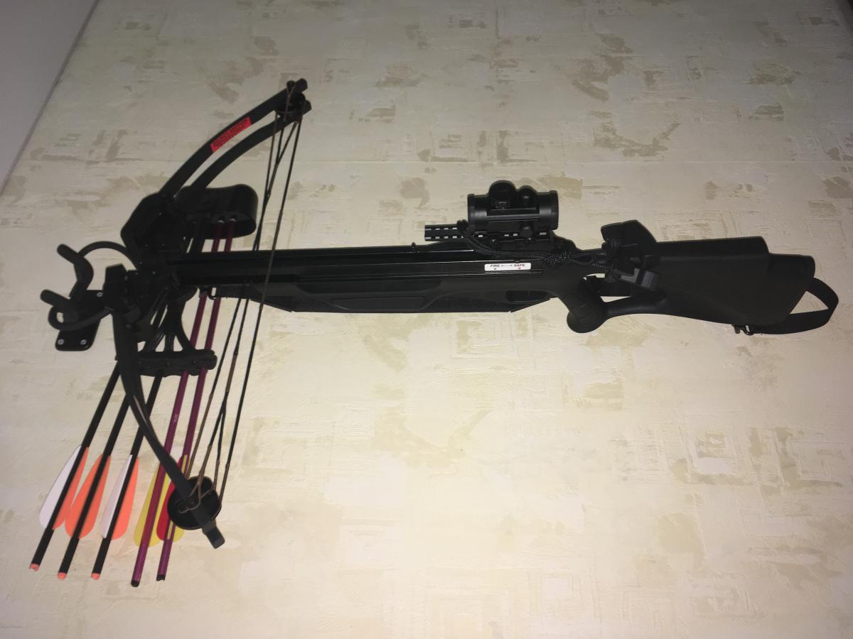 Арбалет для спорта и развлечений ManKung MK-300, блочный, коллиматорный прицел, лазерный целеуказатель, кивер на 6 стрел. Настрелял не более 50 выстрелов. 9 карбоновых стрел, 2 алюминиевые. С документами, на гарантии. В подарок отдам стрелоулавливатель 50-50-20 см. Цену вижу 13000р