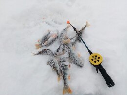 Просто повезло, видно попал прямо на стаю. С одной лунки 9 шт за 5 минут, ну просто как из пулемета. Не крупный, но съедобный. Личный рекорд с одной лунки и почти на каждом махе.