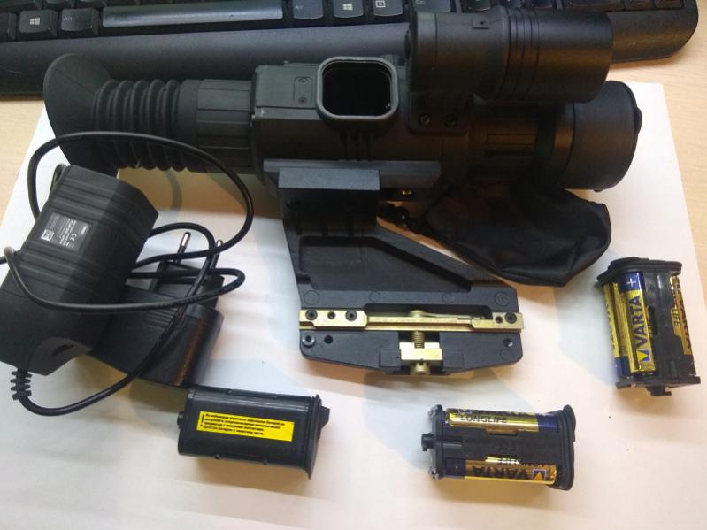 Комплект - прицел, зарядник, аккумулятор, 2 доп. батарейных блока, кофр, доки, коробка