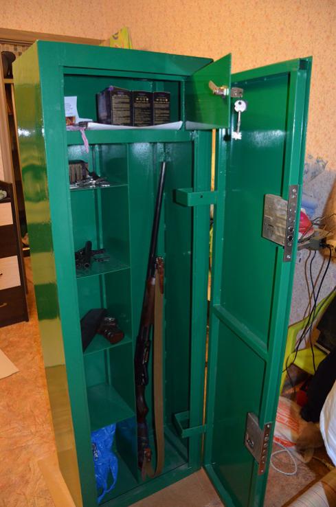 Продам самодельный ружейный шкаф. Размеры 1525х555х305 мм, толщина металла 2 мм, внутренние петли, окрашен порошковой краской, на основной двери 2 замка, в отсеке для патронов простенький почтовый замок (но в самых дешевых сейфах применяются такие же). Делаю ремонт дома, нужен сейф поменьше раза в 2. Кто надумает приобрести, берите с собой товарища, так как сейф очень тяжелый, а я помочь не смогу, спина болит. Цену начнем с 5000, а дальше как пойдет))))) Критика приветсвуется