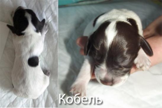 5 кобелей /3 коричнево- пегие и 2 черно-пегие/ и 7 сук /черно-пегие/.